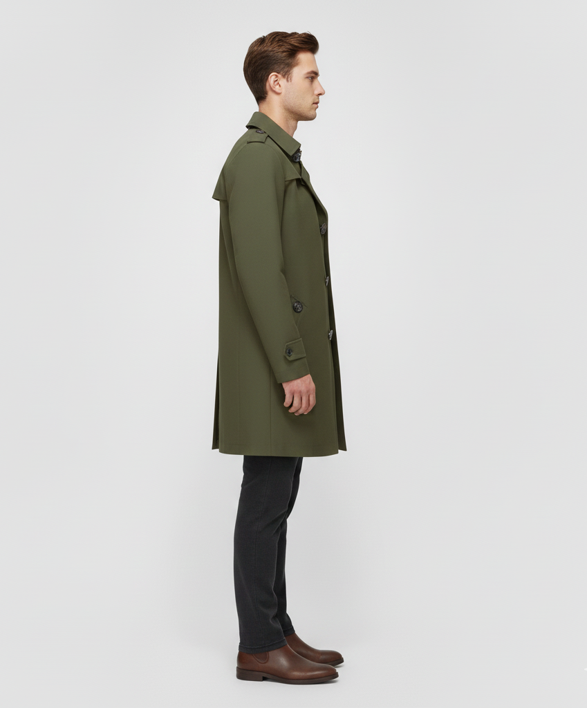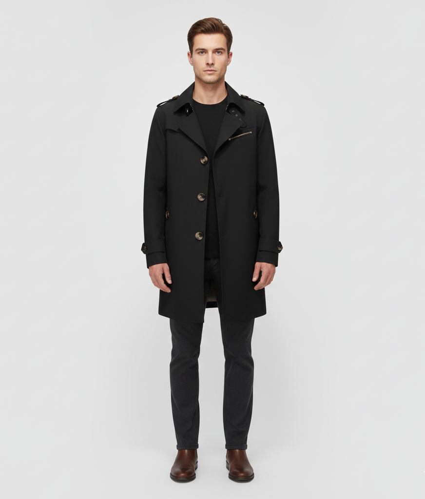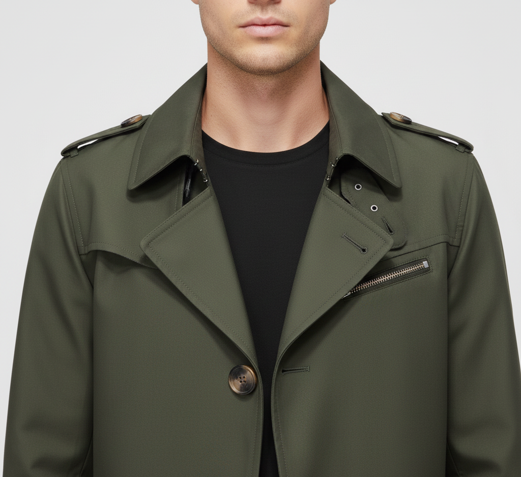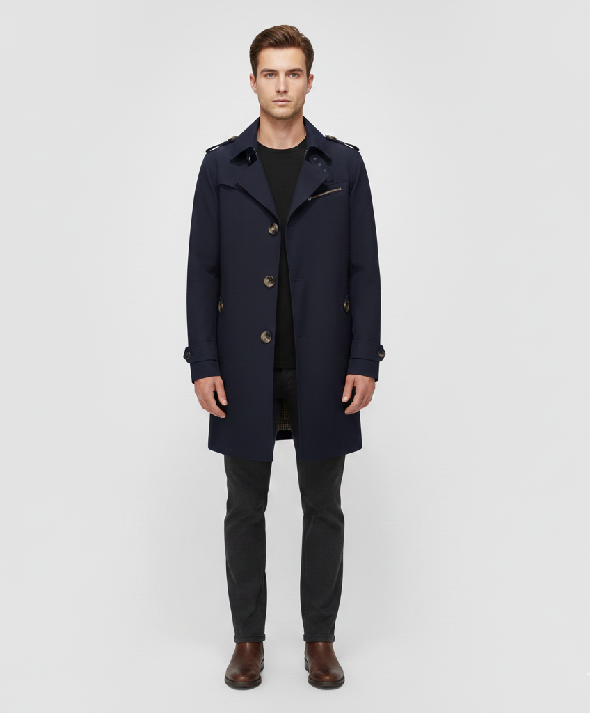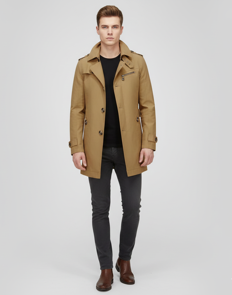 Αυτό το τρεντσκόουτ για άνδρες από βαμβάκι προσφέρει μια δομημένη και άνετη εφαρμογή και είναι ιδανικό για καθημερινή χρήση και επαγγελματικά περιβάλλοντα. Κατασκευασμένο από τεχνικό βαμβάκι, είναι ανθεκτικό στις καιρικές συνθήκες και έχει μια καθαρή, μοντέρνα εμφάνιση. Ο σχεδιασμός με κουμπιά στο μπροστινό μέρος, γιακά όρθιο και πρακτικές τσέπες υπογραμμίζει ένα ουσιώδες και πολυλειτουργικό στυλ. Είναι κατάλληλο για τη μεταβατική περίοδο και συνδυάζεται τόσο με casual όσο και με επίσημα ρούχα.