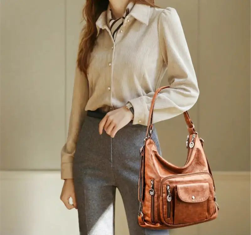 Découvrez le mélange parfait d'élégance et de fonctionnalité dans notre sac à main bandoulière de Multi Bags en cuir, idéal pour les femmes modernes. Fabriqué en cuir synthétique de haute qualité, il allie durabilité et élégance grâce à de nombreuses poches pour une organisation optimale.